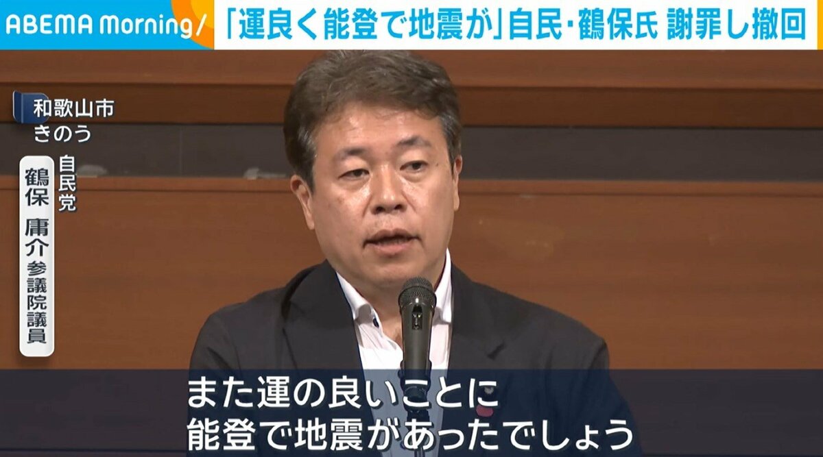 「運のいいことに能登で地震があった」 自民の鶴保庸介氏「撤回の上、陳謝する」も・・・ ファンサマリィ X Facebook はてブ Pocket LINE コピー 2025.07.09 中卒がAI使えば司法試験満点取れる←これもう能力主義の終焉だろ 【画像】最近の52歳、レベチwwwwwwwwwwwwwwwwwwwwwwww 京都府西部の小学校施設で「男女共用トイレ」が物議 東京新聞「参政党かれいわに入れるという人が増えています!!」 【悲報】ちょw北海道に中国村とか意味不明すぎ(笑)誰が得するねんwww 【朗報】角川のフラッパー110円+50%ポイント!!「ふたつのスピカ」「ちおちゃんの通学路」など ジャンプ作品の集英社50%ポイント!! 「参政党か、れいわに入れます」なぜ?その2択を口にする人が増えている…悩める「ロスジェネ」の判断材料 セミの幼虫「度を超えた」夜間の大量採集 中国語でも「採取禁止」注意喚起の張り紙 都内の公園 【悲報】菅義偉さん、もう無理そう・・・ 参政党、TBS報道特集に厳重抗議「報道が意図的に偏向されるような事態が許容されれば、日本の政治、そして民主主義の将来に深刻な影響を及ぼしかねない」訂正等を求める申入書を提出 目次 「運のいいことに能登で地震があった」 自民の鶴保庸介氏「撤回の上、陳謝する」も・・・関連記事 「運のいいことに能登で地震があった」 自民の鶴保庸介氏「撤回の上、陳謝する」も・・・ (出典 times-abema.ismcdn.jp) 1 :2025/07/09(水) 07:22:47.12ID:zbbKna4T9 「運のいいことに能登で地震があった」…自民の鶴保庸介氏「撤回の上、陳謝する」7/8(火) 22:34配信 読売新聞オンライン 続きを読む 続きを見る 中卒がAI使えば司法試験満点取れる←これもう能力主義の終焉だろ 【画像】最近の52歳、レベチwwwwwwwwwwwwwwwwwwwwwwww 京都府西部の小学校施設で「男女共用トイレ」が物議 東京新聞「参政党かれいわに入れるという人が増えています!!」 【悲報】ちょw北海道に中国村とか意味不明すぎ(笑)誰が得するねんwww 【朗報】角川のフラッパー110円+50%ポイント!!「ふたつのスピカ」「ちおちゃんの通学路」など ジャンプ作品の集英社50%ポイント!! 「参政党か、れいわに入れます」なぜ?その2択を口にする人が増えている…悩める「ロスジェネ」の判断材料 セミの幼虫「度を超えた」夜間の大量採集 中国語でも「採取禁止」注意喚起の張り紙 都内の公園 関連記事 関連記事はありません。